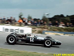 Even though Surtees stay at Ferrari was giving good results, the Briton's relationship with team manager Eugenio Dragoni became worse and worse, as the Italian was very much convinced his protege Lorenzo Bandini was the driver he wanted to support the most. Throughout the 1965 season things got quite unmanageable and Surtees left Ferrari. With the help of BP, Surtees acquired a seat with the Cooper team, driving their V12 Maserati-powered T81. The British Grand Prix was their first outing and with that in mind, the sixth position after practice wasn't bad at all. The Brabhams were in a league of their own, posting times over a second faster than the competition. However, as second Brabham driver Denny Hulme got badly away from the line, Surtees started into fifth and then quickly moved past Clark into fourth. There he got stuck behind Dan Gurney's Eagle. After six laps he finally made his way past and into third. Another six laps later, he moved into second, ahead of his teammate Jochen Rindt. Sadly for Big John, he then tumbled to fifth in the space of just a few laps. From there on, things weren't moving ahead and after 68 laps the Cooper's transmission failed and ended Surtees' race.