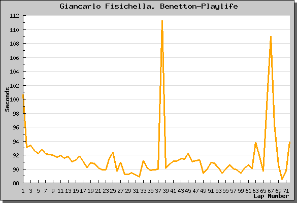 Tip: Click on a driver name to generate graph and highlight all his lap times in Table 2.