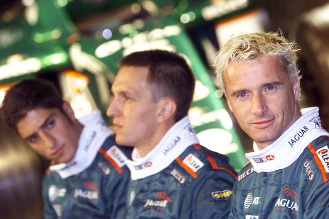 Jaguar drivers Ireland's Eddie Irvine (R), Brazilian Luciano Burti (C) and test