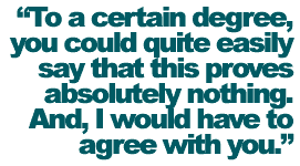 To a certain degree, you could quite easily say that this proves absolutely nothing. And I would have to agree with you.